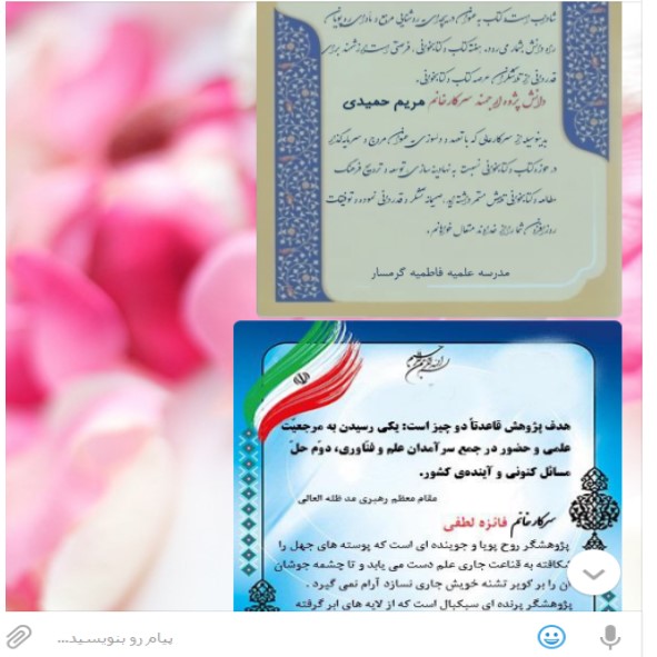 از برندگان مسابقات و فعالان عرصه پژوهش مدرسه علمیه فاطمیه گرمسار به مناسبت هفته پژوهش با اهدا لوح تقدیر وجوایز نقدی تقدیر شد.