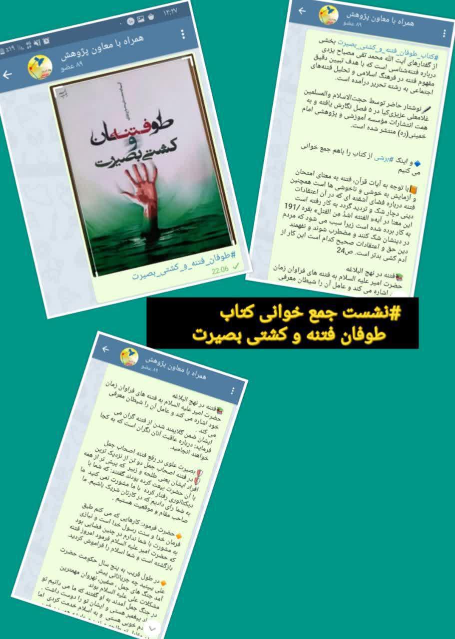 بخشی از این کتاب به منظور بصیرت افزایی طلاب در بستر فضای مجازی جمع خوانی گردید.
