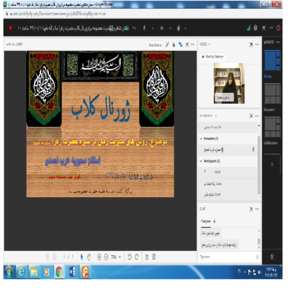 وی: روش های مدیریت زمان در زندگی حضرت فاطمه(س) از جمله عدم تاخیر در انجام امور، تقسیم و تفویض کار، انجام چند کار به صورت همزمان را بیان کردند.