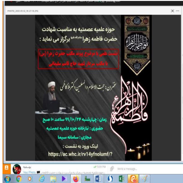 همزمان در ایام فاطمیه معاونت پژوهش با همکاری معاونت فرهنگی حوزه علمیه عصمتیه ، نشست علمی با موضوع «پیوند مکتب حضرت زهرا (سلام الله علیها) با مکتب سردار شهید حاج قاسم سلیمانی» را برگزار نمود.