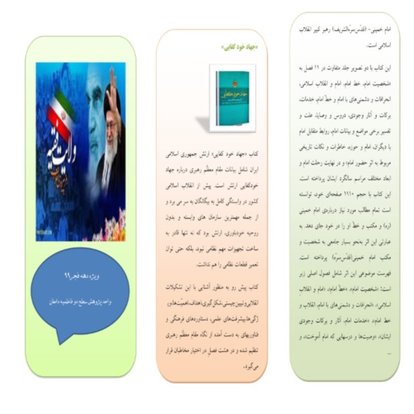 به مناسبت دهه مبارك فجر، واحد پژوهش حوزه فاطميه دامغان در تاريخ12/11/99 اقدام به تهيه برشور پژوهشي ويژه اين ايام الله نموده است و اين برشور در فضاي مجازي انتشار يافته است.