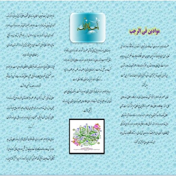 در سالروز ولادت با سعادت جواد الائمه و حضرت علی اصغر(علیهما السلام) بروشور مولودین فی الرجب تنظیم و در فضای مجازی مدرسه علمیه حضرت معصومه س نشر داده شد.