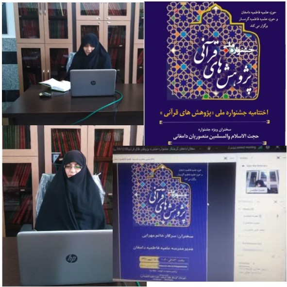 معاون پژوهش حوزه علميه فاطمیه دامغان از برگزاري اختتامیه «جشنواره ملي پژوهش هاي قرآني » خبر داد .خانم خواجه زاده در این رابطه گفت : جشنواره ملي پژوهش هاي قرآني، با مشاركت حوزه علميه فاطميه دامغان و حوزه علميه فاطميه گرمسار؛ با هدف شناسايي ظرفيت هاي علمي- پژوهشي در زمينه قرآن و كلام وحي در روز دوشنبه مورخ18/12/99در كوثر نت، سامانه سيما برگزار گرديد.
