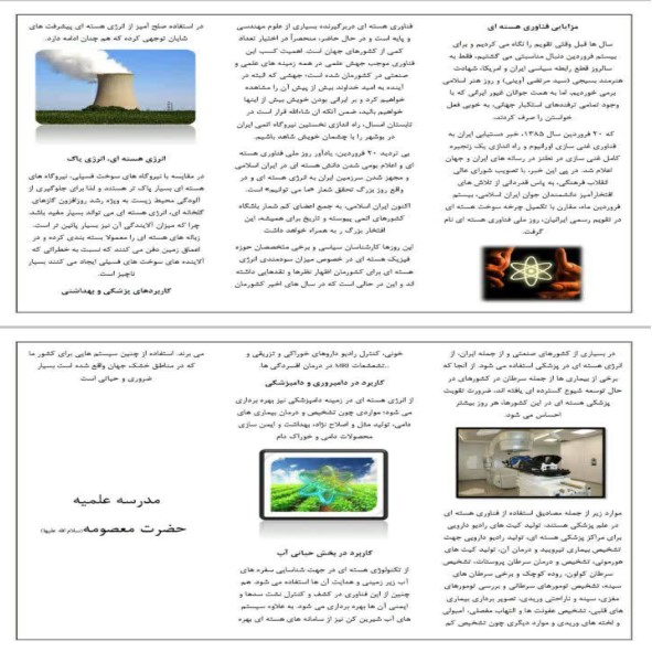 معاونت پژوهش مدرسه علمیه حضرت معصومه(س) شاهرود به مناسبت بزرگداشت روز فناوری هسته ای بروشوری تهیه و در فضای مجازی بین طلاب توزیع کرد.