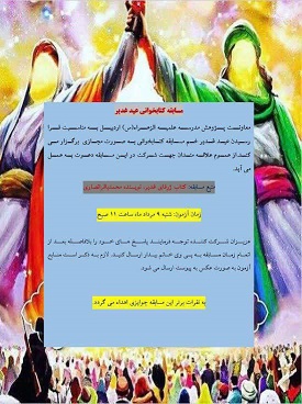به گزارش حکیمه نوری این مسابقه در سطح مدرسه ای بین طلاب سطح دو و سه و با همکاری کتابدار مدرسه در راستای ترویج فرهنگ مطالعه و آشنایی بیشتر طلاب با فرهنگ غدیر برگزار شد که از برگزیدگان نیز با اهداء جوایزی تجلیل خواهد شد.