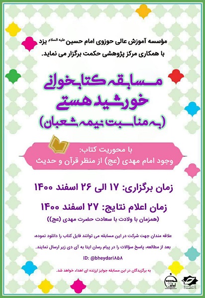 زمان اعلام نتایج: ۲۷ اسفند ۱۴۰۰ ( همزمان با ولادت با سعادت حضرت مهدی (عج))