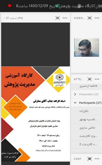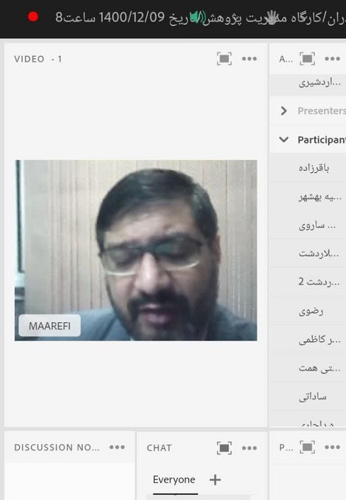 در کارگاه مدیریت پژوهش آموزش محور، جناب آقای دکتر معارفی به پنج منبع دخیل در امور پژوهش از جمله؛ انسانی/ مالی/ علمی/ کالبدی و فیزیکی/ سخت افزاری و نرم افزاری اشاره داشتند و به راهکارهای مهارت ساماندهی، مدیریت بهره وری بیشتر و ارزش افزوده آنها اشاره داشتند.