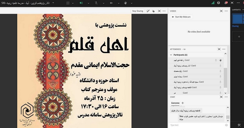 به مناسبت هفته پژوهش و به همت سرپرست و معاون پژوهش مدرسه زینبیه و به مناست هفته پژوهش، نشست پژوهشی با اهل قلم، با حضور حجت الاسلام ایمانی مقدم در تاریخ 25/09/1402 به صورت مجازی در سامانه مدرس برگزار گردید.