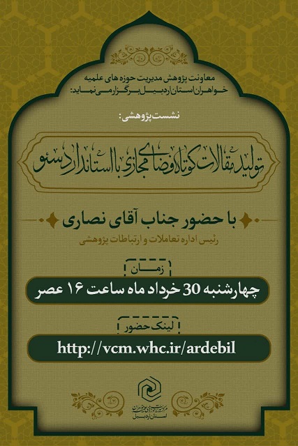 معاونت پژوهش مدیریت حوزه علمیه خواهران استان اردبیل برگزار می نماید: