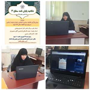 برگزاری جلسه دفاعیه سطح ۳ رشته تفسیر و علوم قرآنی باعنوان: " مبانی قرآنی تکالیف سیاسی_اجتماعی بانوان جامعه اسلامی در پرتو سیره فاطمه سلام الله علیها " توسط پژوهشگر محترم خانم هاجر رحیمی با داوری سرکار خانم دکتر خدیجه احمدی بیغش و راهنمایی حجت الاسلام والمسلمین آقای دکتر محمدعلی منصوریان، در روز شنبه ۲۴ شهریور ماه ۱۴۰۳ ساعت ۱۰ صبح در مدرسه علمیه تخصصی امام حسن مجتبی علیه السلام با حضور جمعی از اساتید و طلاب برگزار گردید و رساله طلبه با کسب رتبه عالی پذیرفته شد.