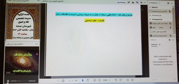 مدرسه تخصصی فقه و اصول الزهراء سلام الله علیها شهرستان صحنه جلسه کارگروه در 6 آبان 1403ساعت 13 برگزار کرد.
