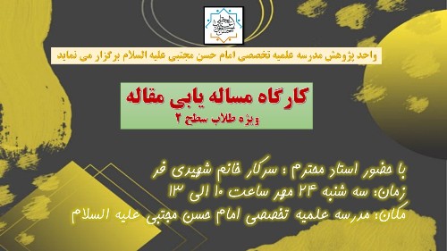 واحد پژوهش مدرسه علمیه تخصصی امام حسن مجتبی علیه السلام کارگاه مساله یابی مقاله ویژه طلاب سطح دو برگزار می نماید