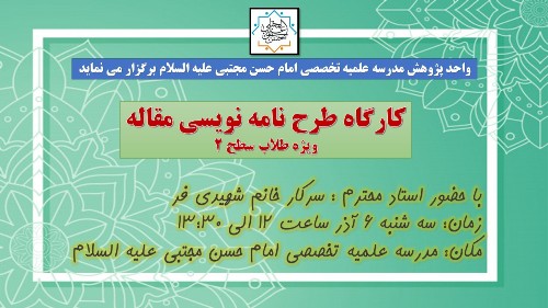 واحد پژوهش مدرسه علمیه تخصصی امام حسن مجتبی علیه السلام کارگاه طرح نامه نویسی مقاله ویژه طلاب سطح 2 برگزار می نماید