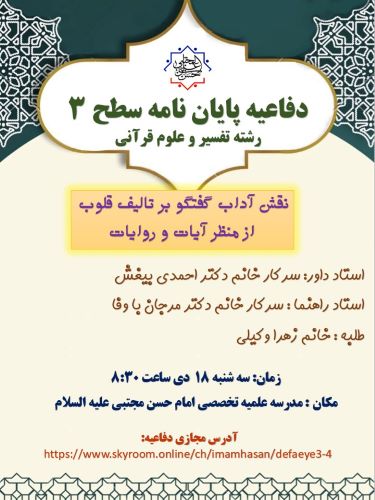 معاونت پژوهش مدرسه علمیه تخصصی امام حسن مجتبی علیه السلام دفاعیه طلبه رشته تفسیر و علوم قرآنی را برگزار کرد.