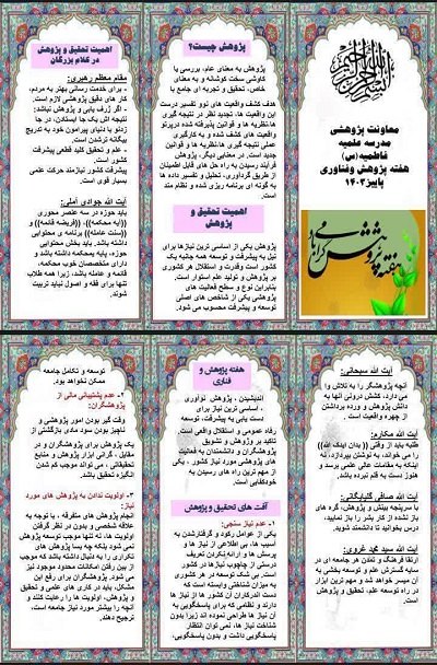 عناوین ذکر شده در این بروشور شامل : تعریف پژوهش، اهمیت پژوهش در کلام بزرگان، و آسیب هایی که در تحقیق و پژوهش وجود دارد، وجهت مطالعه و آشنايي طلاب در کانال مدرسه بارگزاری شده است.
