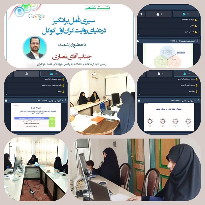 به گزارش پایگاه خبری معاونت پژوهش مدرسه علمیه تخصصی حضرت نرجس (سلاماللهعلیها) زاهدان، نشست علمی با عنوان «سیری تأملبرانگیز در دنیای روایتگران گوگل» ویژه کادر، اساتید و طلاب سطوح1، 2، ۳و ۴ استان سیستان و بلوچستان روز سهشنبه ۲۳اردیبهشت ۱۴۰۴با حضور استاد ارجمند جناب آقای نصاری (رئیس اداره تعاملات و ارتباطات پژوهشی مرکز مدیریت حوزه های علمیه خواهران) به صورت حضوری و مجازی برگزار گردید.