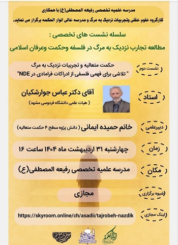 مدرسه علمیه تخصصی رفیعه المصطفی (ع) با همکاری مدرسه عالی انوار الحکمة و کارگروه علوم نقلی تجربیات نزدیک به مرگ برگزار میکند: