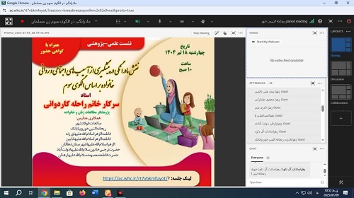 خانم کاردوانی در ابتدای جلسه با اشاره به دیدگاه توحیدی دین اسلام، الگوی ارائه شده بر اساس آموزه های اسلام را دارای ریشه توحیدی دانست و گفت به دلیل اهمیت رضایت خداوند در این الگو، پیاده کردن کامل آن مستلزم اعتقاد به توحید، نبوت، امامت و معاد است و در حقیقت الگوی سوم زن مسلمان بر اساس همین اصول اسلام تبیین شده است و مدل ها و مصادیق کامل آن را می توان در شخصیت بانوان بزرگواری همچون حضرت فاطمه زهرا و زینب کبری سلام الله علیهما دید.