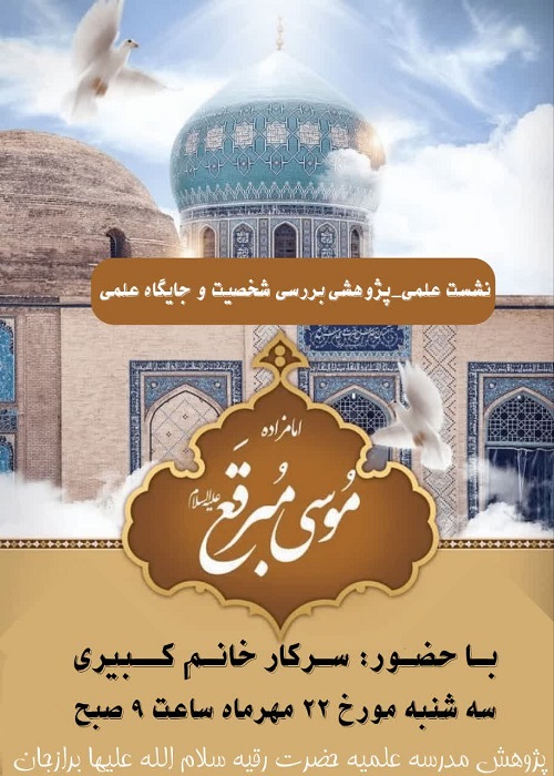 به گزارش روابط عمومی مدرسه علمیه حضرت رقیه(س) برازجان، معاون پژوهش مدرسه علمیه حضرت رقیه(س) در آستانه سالروز وفات امامزاده مبرقع، نشست علمی_پژوهشی تخصصی با محوریت «بررسی شخصیت و جایگاه علمی امامزاده مبرقع» با ارائه خانم زینب کبیری، استاد مدرسه علمیه حضرت رقیه (س) برازجان رو زسه شنبه مورخ 22 مهر ماه ساعت 9 صبح برگزار می شود.
