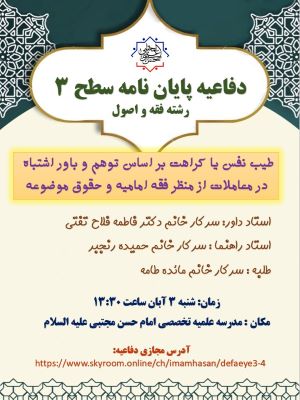 معاونت پژوهش مدرسه علمیه تخصصی امام حسن مجتبی علیه السلام دفاعیه طلبه رشته فقه و اصول را برگزار می کند.