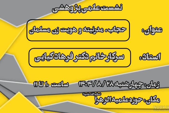 مدرسه علمیه الزهرا سلام الله علیها کرج اقدام به برگزاری نشست علمی پژوهشی با عنوان حجاب، مدرنیته و هویت زن مسلمان میکند. این نشست روز چهارشنبه ۲۸ آبان ۱۴۰۴ و با حضور سرکار خانم دکتر فرهادکیایی برگزار خواهد شد.