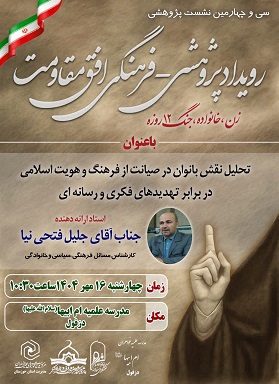 در این نشست، آقای فتحینیا،با ارائه تحلیلی مفهومی و چندلایه، به تبیین جایگاه بانوان در مواجهه با تهدیدهای نرم و رسانهای در جنگپرداخت. ایشان سخنان خود را در قالب یک مدل سهضلعی باعنوان «مثلث زن، مقاومت و رسانه» ارائه داد که در آن، نقش بانوان به عنوان محور تربیت و انتقال فرهنگ اسلامی، در پیوند با گفتمان مقاومت و ابزار رسانهای مورد بررسی قرار گرفت. شرح ایشان از هر ضلع این مثلث بهصورت زیر بود: