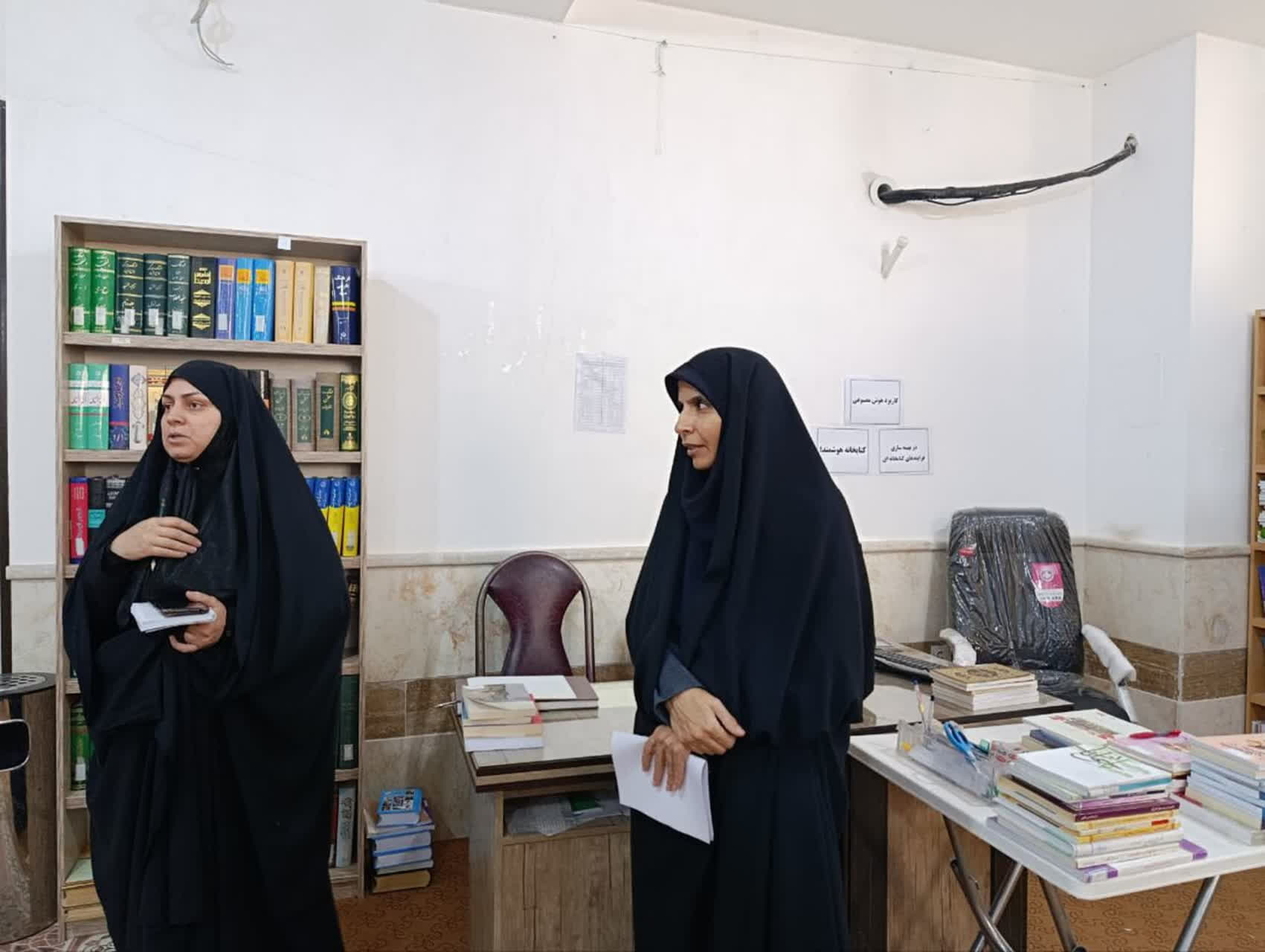 به مناسبت هفته کتاب و کتابخوانی، **اکبری** مسئول کتابخانههای عمومی شهرستان دشتی از کتابخانه مدرسه علمیه فاطمیه سلاماللهعلیها بازدید کرد.
