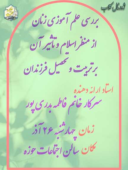 خانم کربلایی پور معاونت پژوهش مدرسه علمیه حضرت خدیجه(سلام الله علیها) بندرماهشهر بیان کرد: به مناسبت هفته پژوهش برنامه ژورنال کلاب با عنوان مقاله«ررسی علم آموزی زنان از منظر اسلام و تاثیر آن بر تربیت و تحصیل فرزندان» با حضور سرکار خانم فاطمه بدری پور ویژه اساتید و طلاب به صورت مجازی در برنامه قرار روز چهارشنبه 10 دی ماه 1404 برگزار خواهد شد.