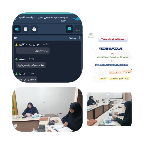 سرکار خانم کوهستانی معاون پژوهش مدرسه تخصصی گفتند: پایاننامه با کسب امتیاز خیلی خوب از هیئت داوران، پذیرفته شد.