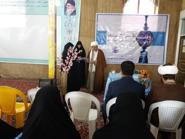 به مناسبت هفته کتاب مدرسه فاطمه الزهراء(سلام الله علیها)نشست علمی با عنوان همه واقف باشیم با همکاری اداره اوقاف شهرستان برگزار نموداین جلسه با حضور امام جمعه محترم شهرستان برگزارشد، ایشان ضمن اهمیت وقف همگان را به امر وقف کتاب توصیه نمودند . ایشان فرمودند: یکی از مصادیق وقف، وقف وقت است که کتابداران این مدرسه با در اختبار قرار دادن اوقات خود هم به امر مهم وقف می پردازند وهم به طلاب این مدرسه خدمت می کنند. در پایان از 2 کتابدار و مسئول کتابخانه با اعطای هدایا و لوح سپاس ، تقدیر به عمل آمد.