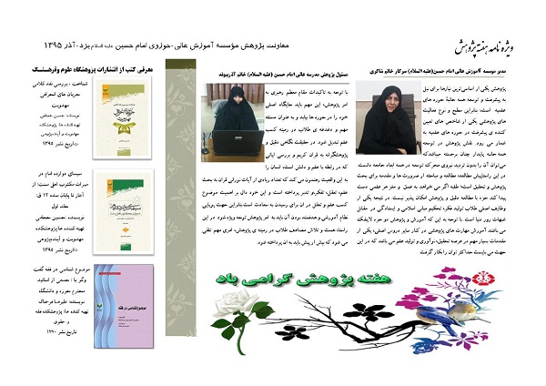 *** به مناسبت هفته پژوهش از طلاب پژوهشگرموسسه آموزش عالی حوزوی خواهران امام حسین(ع) یزد، تقدیر به عمل آمد.