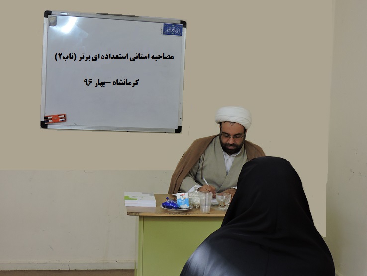 مرحله استانی مصاحبه استعدادهای برتر در عرصه آموزش در استان کرمانشاه با حضور حجت الاسلام و المسلمین جناب آقای کافی برگزار شد