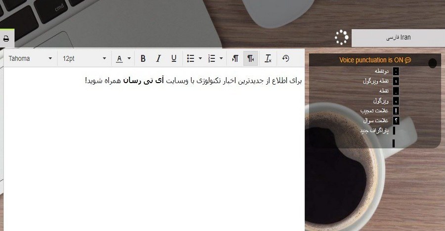 برای تایپ علائم سجاوندی نیز باید نام علامت مورد نظر را از لیست موجود در سمت راست صفحه بیان کنید تا به صورت خودکار در انتهای متن گذاشته شود. خواهید دید که نتیجه کار بسیار خوب و شگفتانگیز است. البته باید در نظر داشته باشید که برای کسب خروجی بهتر، نباید به صورت محاورهای صحبت کرده یا در مکانی پر سر و صدا قرار بگیرید. حتما توصیه میکنیم از یک هندزفری دارای میکروفون استفاده نمایید. از دیگر امکانات speechtexter میتوان به داشتن گزینههای ابتدایی مورد نیاز برای تایپ اشاره نمود که در نوار بالایی در دسترس کاربر قرار دارند. همچنین در نهایت میتوانید متن مورد نظر خود را کپی یا به صورت فایل تکست ذخیره کرده و یا حتی پرینت بگیرید