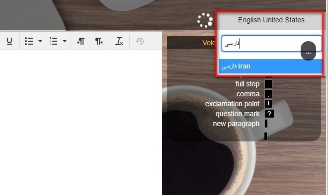 سپس خواهید دید که این وبسایت از شما اجازه دسترسی به میکروفون دستگاهتان را درخواست میکند.(تصویر بالا) روی گزینه Allow را کلیک کرده و از منوی موجود در سمت راست این وبسایت با تایپ کلمه فارسی آن را انتخاب کنید.(تصویر زیر)