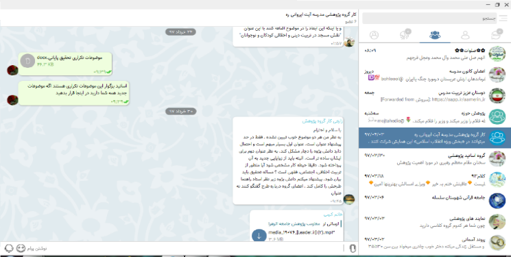 4) گروه اعضای کانون پژوهشی: جهت اطلاع رسانی فعالیتها و برنامه های سیر مطالعاتی به اعضای کانون.