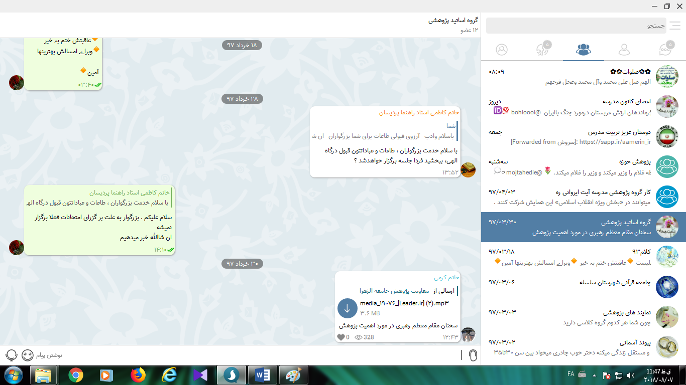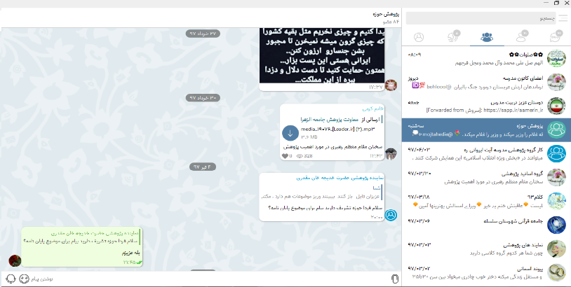 1) گروه پژوهش حوزه: اطلاع رسانی تمامی فراخوانها و اخبار مهم حوزه به طلاب
