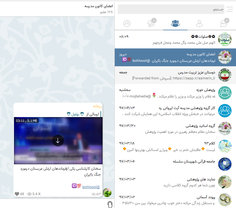 گروههای ایجاد شده در فضای مجازی سروش و ایتا به قرار ذیل می باشد: