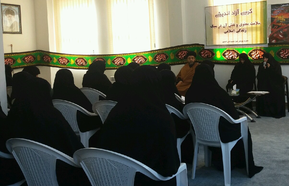 به همت لیلا صالحی معاون پژوهش مدرسه ثامن الحجج علیه السلام شهرستان پارس آباد ، کرسی آزاد اندیشی با موضوع « سلامت معنوی و نقش آن در سبک زندگی اسلامی » در روز سه شنبه مورخ 97/8/2 در سالن اجتماعات با حضور خانم دیندار استاد ارائه کننده ، اساتید و طلاب به عنوان منتقد، حجت الاسلام و المسلمین سعید رشادی استاد داور و با حضور حداکثری طلاب برگزار شد . زینب دیندار مدیر مدرسه به عنوان استاد ارائه کننده گفت : سلامت معنوی به عنوان احساس درونی و رضایت بخش توأم با ارتباطات سازنده با خود و دیگران و وجود متعالی ، در چارچوب فرهنگی خاص جامعه تعریف می شود که به معنادار کردن زندگی و مرگ می انجامد .محور اصلی سبک زندگی اسلامی ، سلامت معنوی است و از مهم ترین شاخصه های سبک زندگی اسلامی ایمان و عمل صالح است و برای رسیدن به حیات طیبه یا کاملترین سبک زندگی اسلامی نیازمند هردو ی آنها خواهیم بود .