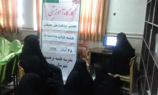 كارگاه آموزش نرم افزارهاي تحقيقاتي (جامع التفاسير) با حضور استاد یاری (ازپژوهشگران مرکز تربیت مدرس قم) و تعدادی از طلاب علاقه مند در محل مدرسه علمیه نرجسیه شهرستان سنقر برگزار گردید .
