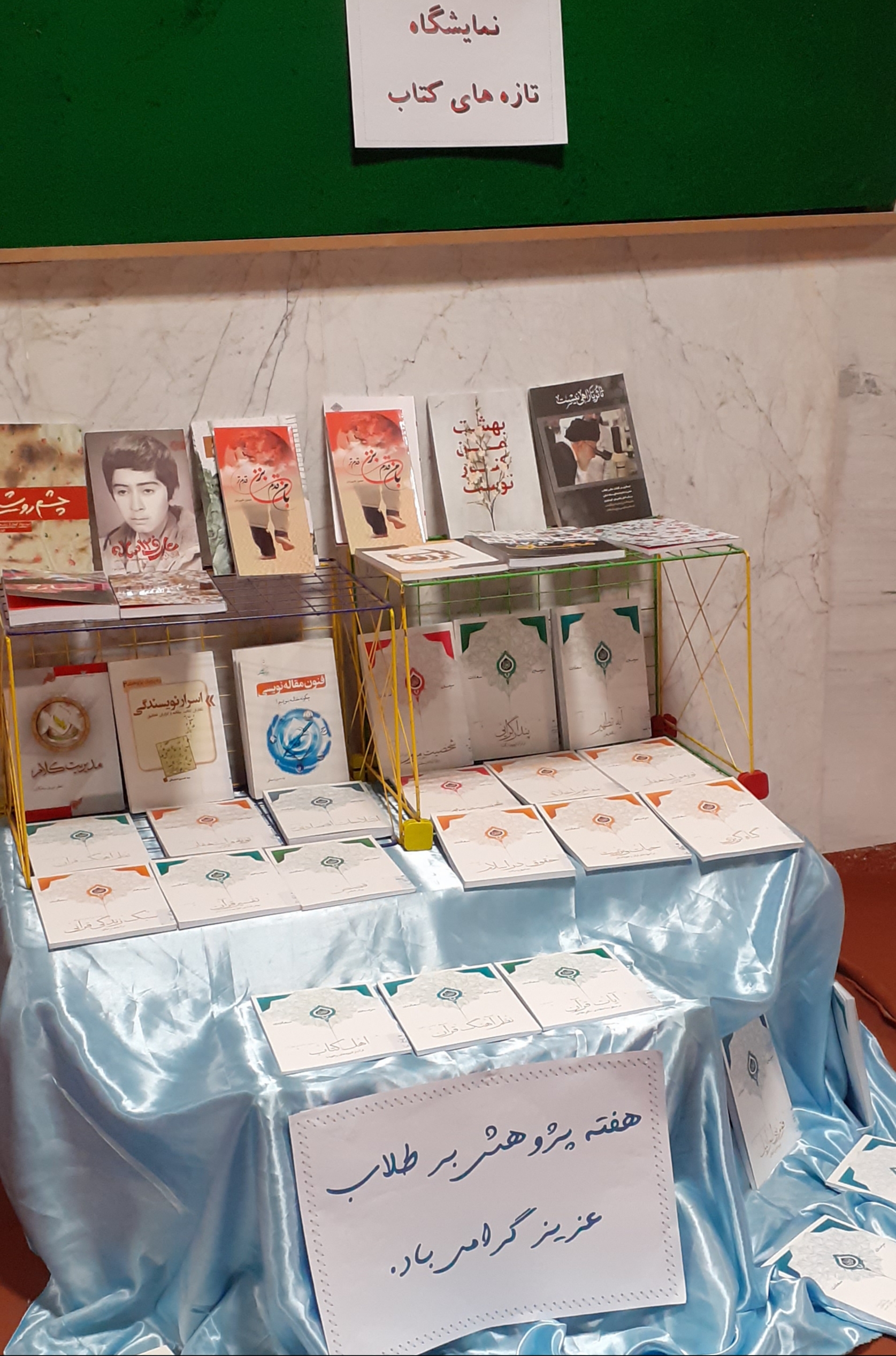 در حاشیه این نمایشگاه به تعداد 35 عنوان ، از کتب تازه نشر شده در حوزه دفاع مقدس از جمله راضِ بابا ، ، چشم روشنی ، بهشت من کنار توست و.. همچنین مجموعه آثار قرآنی (سرمه سعادت) جهت آشنایی و ارتقای فرهنگ مطالعه و کتابخوانی در معرض دید طلاب قرار گرفت.