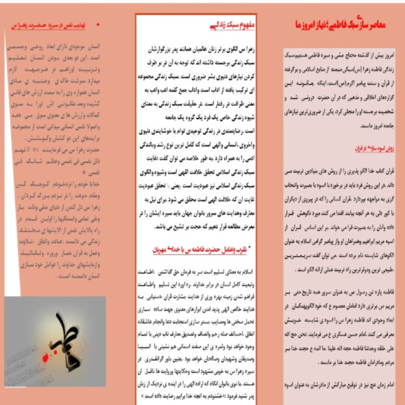 به مناسبت شهادت حضرت زهرا مرضیه سلام الله علیها بروشوری با عنوان «معاصر سازی سبک زندگی زهرا س ،نیاز امروز ما » در مدرسه علمیه فاطمیه گرمسار تهیه شد .در این بروشور به برخی از سیره زندگی حضرت اشاره شده است .