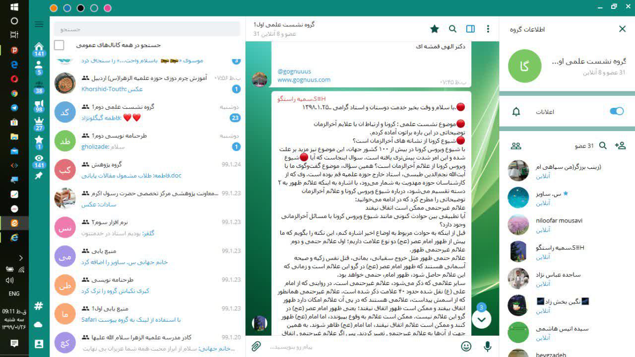 ايشان گفت: با توجه به شیوع بیماری کرونا و تعطیلی مدارس ،برنامه هاي مهارت آموزی پژوهشگری نيم سال دوم 98، براي ورودي هاي مهر97 ، آموزه «طرحنامه نويسي» در ضمن درس «اخلاق اسلامي (3)» و آموزه «نشست علمي» در ضمن درس«معارف حديثي» توسط خانم كريمي، براي ورودي هاي مهر98 آموزه «منبع يابي» در ضمن درس «تاريخ تحليلي اسلام (2)» و آموزه «نشست علمي» در ضمن درس« تاريخ تحليلي انقلاب اسلامي» توسط خانم فرض اللهي، براي ورودي هاي مهر96 دوره پاره وقت آموزه «طرحنامه نويسي» در ضمن درس «عقايد استدلالي(1)» توسط خانم فومن بهجت و آموزه «مهارت استفاده از نرم افزارهاي تحقيقاتي» در ضمن درس«ترجمه و مفاهيم قرآن» توسط خانم بهزاد به صورت مجازي در پيام رسان ايتا برگزار مي گردد.