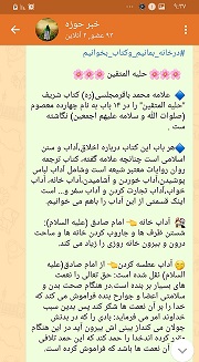 با توجه به وضعیت کنونی پیش آمده و تعطیلی کتابخانه ها، معاونت پژوهش مدرسه علمیه فاطمیه «سلام الله علیها» مشگین شهر به منظور گسترش فرهنگ کتابخوانی و مطالعه، اقدام به برگزاری نشست کتابخوان با عنوان «در خانه بمانیم و کتاب بخوانیم » به صورت گروهی در فضای مجازی برگزارنمود.