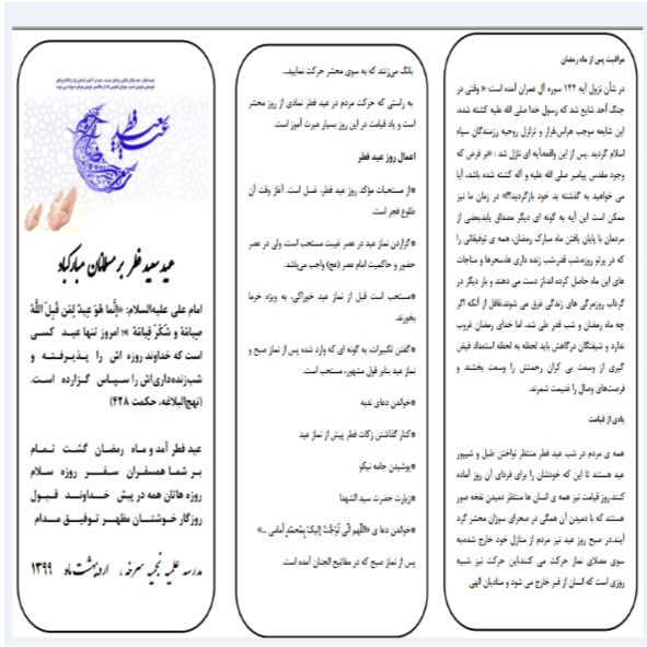 بروشور ی مناسبت عید سعید فطر در واحد پژوهش نجمیه سرخه تهیه ودر فضای مجازی در اختیار طلاب واساتید مدارس استان سمنان قرار گرفت .