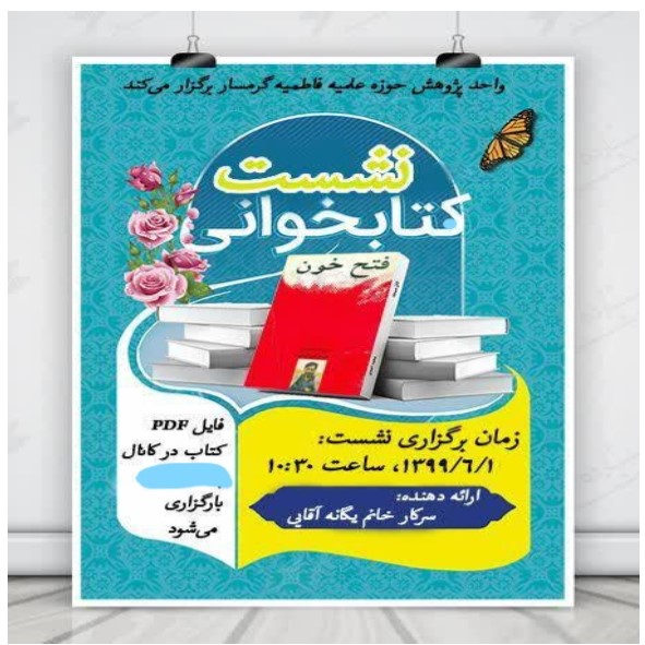 نشست کتابخوانی " فتح خون "اثر شهید سید مرتضی آوینی با حضور سرکار خانم یگانه آقایی ،عضو کانون پژوهشی مدرسه علمیه فاطمیه گرمسار در روز شنبه 1 شهریور ماه مصادف با دوم ماه محرم برگزار گردید . در این نشست خانم آقایی به بیان مقدماتی پیرامون شخصیت نویسنده واثار او پرداخت ودر ادامه ضمن معرفی اجمالی کتاب فتح خون به تبیین نظرات خود درضمن ارایه پاور پوینت پرداخت . این نشست در محیط مجازی با حضور اعضای کانون برگزار شد .