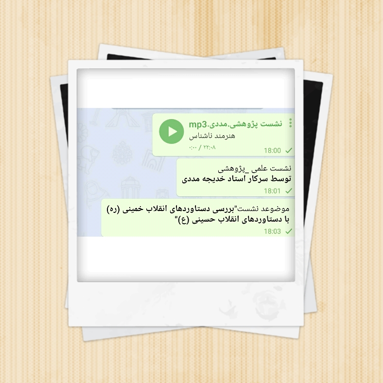 نشست علمی- پژوهشی با عنوان: «بررسی دستاوردهای انقلاب خمینی(ره )و انقلاب حسینی در دفاع مقدس»، این نشست توسط سرکار خانم خدیجه مددی استاد حوزه علمیه خواهران در شبکه پیام رسان داخلی ایتا بصورت صوت به سمع طلاب در گروه پژوهشی برگزار شد.