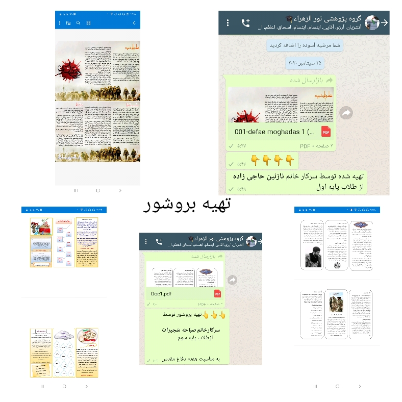 بروشور هایی با عناوین هفته دفاع مقدس،خاطرات شهدای 8سال دفاع مقدس،ویژگیهای دفاع مقدس، توسط مدرسه علمیه حضرت رقیه (س) تهیه شد.