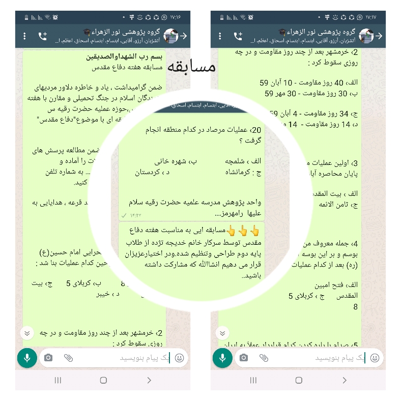 برگزاری مسابقه به مناسبت هفته دفاع مقدس در گروه پژوهشی مدرسه علمیه حضرت رقیه (س) رامهرمز