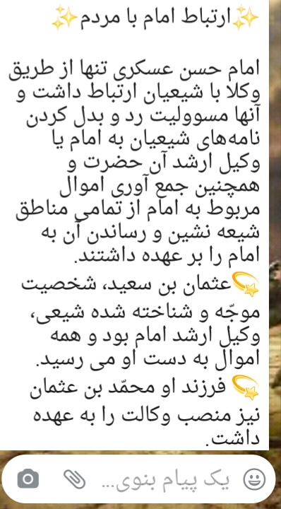حضرت امام حسن عسکری ع یازدهمین پیشوای شیعه است رهبری کهدرتمام عمرکوتاه خویش 28سال مدتی رادرپادگانی درسامرا به همراه پدرش امام هادی علیه السلام تحت مراقبت بسیارشدید دستگاه استبدادی خلفای بنی عباس قرارداشت و بعدازشهادت پدربزرگوارش این حالت استمراریافت و نیز بارها به زندان جباران زمان گرفتارشد مدت امامت امام حسن عسکری علیه السلام شش سال بود که ازسال 254 هجری قمری شروع و درسال 260 باشهادت امام حسن عسکری علیه السلام پایان یافت امام حسن عسکری ع درطول مدت زندگانی و بهویژه دردوران امامت خویش به واسطه مبارزه با طاغوت های زمان درتبعید و زندان و تحت نظربه سرمی بردوسرانجام درهشتم ربیع الثانی سال 260 ودر28سالگی درشهر سامرا و توسط احمدمعتمدپانزدهمین خلیفه عباسی به طرزمرموزی مسموم و به شهادت رسیدامام حسن عسکری ع همانند پدرانش به هم فضائل و خوبی ها اراسته و ازهمه بدیها پیراسته بود امام حسن عسکری ع آنچنان درقله شکوهمند کمال و فضیلت قرارداشت که نه تنها دوستان و پیروانش ایشان را ستوده اند بلکه دشمنان کینه ورز وسرسخت به مدح و ستایش امام حسن عسکری ع پرداخته اندفرم ویژه مبلغین بدون مرزمیراث علمی امام به چند محور بیان می شود که ادعیه که در زمان امام بیان شده از میراث علمی ان حضرت حساب میشهامام حسن عسکری(ع) با تعیین وکیلهایی ارتباط مردمی گستردهای ایجاد و مشکلات مردم را پیگیری میکردند که این کار اقدامی ماندگار و ارزشمند و الگویی در عصر غیبت برای پیروی و تبعیت از نائبان عام امام زمان(عج) است.
