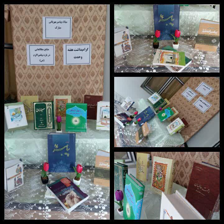 لیلا صالحی معاونت پژوهش حوزه علمیه ثامن الحجج (علیه السلام) پارس آباد، به مناسبت هفته وحدت و در راستای معرفی منابع مطالعاتی در باره نبی مکرم اسلام و نیز کتابشناسی پیامبر اکرم (صلی الله علیه و آله وسلم) ،با هدف مطالعه منابع و شعار"کرونا فرصتی برای مطالعه"، مجموعه ای از کتب را جهت استفاده طلاب با برپایی نمایشگاه در معرض بازدید قرار داد و به معرفی کتب در قالب جزوه پرداخت.
